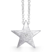 This sterling silver star shaped pendant has a textured finish and a diamond set in the centre to add a touch of sparkle.