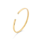 This is a torque bangle in 18ct yellow gold with 2 rubover set brilliant cut diamonds adding an alluring detail to a clean design.