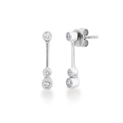 18ct white gold stud earrings featuring a drop bar detail. Each earring has 3 brilliant cut diamonds in rub over settings.