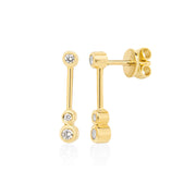 18ct yellow gold stud earrings featuring a drop bar detail. Each earring has 3 brilliant cut diamonds in rub over settings.