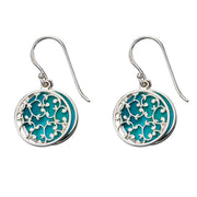 Turquoise and Sterling Silver disc earrings on silver hooks.