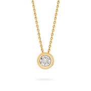 18ct yellow gold pendant with a bezel set brilliant cut diamond.