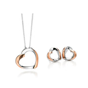 Sterling silver and rose gold plated Open Heart Pendant and matching stud earrings