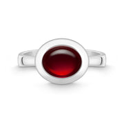 The garnet practically jumps out of the silver setting, it's such a vibrant, rich, berry red. The large oval, smooth-finish, cabochon stone is 10x8mm.