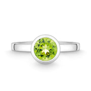 7mm round faceted peridot, rubover setting ring