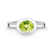 Silver ring set with an oval, faceted peridot
