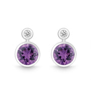 Catherine Jones Amethyst and Diamond Twinkle Stud Earrings Sterling Silver