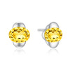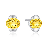 A stud earring featuring a faceted citrine gently cocooned by sterling silver