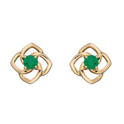 9ct yellow gold flower shaped stud earrings with round emerald.