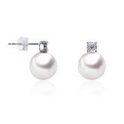 18ct white gold stud earrings set with brilliant cut diamonds with an Akoya pearl drop.