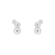 Sterling silver stud earrings with 3 layered daisies in crisp white enamel.
