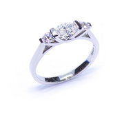 Our original 3-stone Trio ring. Gorgeous oval, faceted diamond 0.32ct supported by two round brilliant cut diamonds Tot 0.16ct G/VS.