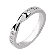 18ct white gold shaped flat Wedding ring set with 6 brilliant cut diamonds. Polished finish Width 3mm