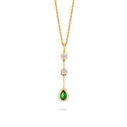18ct yellow gold pendant and chain featuring a drop bar detail set with 2 brilliant cut and a pear cut tsavorite garnet in rub over settings.